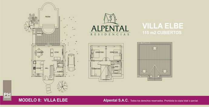 Inside we find a hall with double height and the stairwell. To the sides we find the service area: kitchen, bathroom and a service room that could also be used as an office or guest bedroom. The dining and living room are also located on the first floor and are integrated with doors that communicate to the backyard garden. The spacious 2nd floor has 3 bedrooms and a full bathroom.